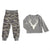 Your little boy will be ready for camping, playing or relaxing in this two-piece set from Mud Pie's Little Deer Collection. The grey cotton top features a cable knit stag applique and back snap closure. The camo printed French terry pants have ribbed cuffs and twill tape faux drawstring. A fun outfit for all seasons.