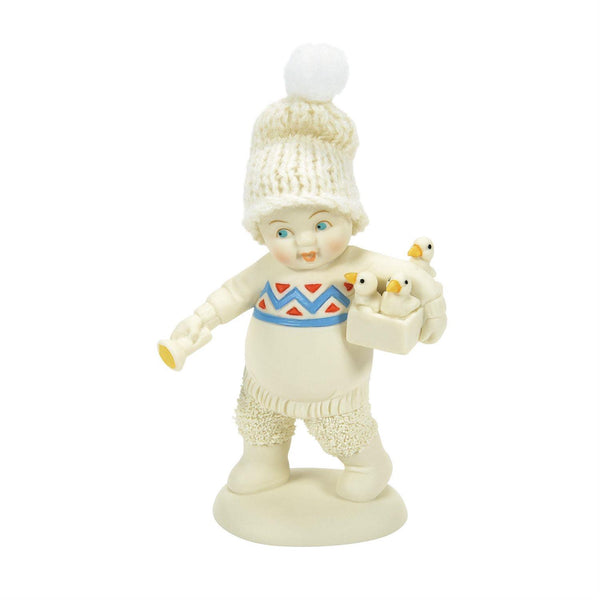 This Snowbaby is collecting the baby Puffins to safely return them to their home at sea. Designed by Kristi Jensen Pierro exclusively for Department 56.