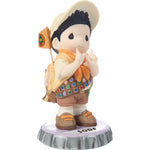 Celebrate the spirit of adventure and the magic of Disney & Pixar’s Up with the Adventure Is Out There Russell Figurine, a heartwarming collectible from Precious Moments, available at CountryNMoreGifts.com. This beautifully detailed figurine captures Russell in his Junior Wilderness Explorer uniform, proudly displaying his hard-earned merit badges and making a “W” with his fingers—a tribute to his love for exploration and the great outdoors.
