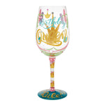 Raise a glass and celebrate like royalty with the Birthday Queen Wine Glass, a stunning hand-painted Lolita collectible, available exclusively at CountryNMoreGifts.com. Designed for the queen of the day, this dazzling wine glass is adorned with glittering crowns, twinkling stars, and a kaleidoscope of vibrant colors. Covered in bedazzled crystals and shimmering details, this glass is the ultimate way to toast to her special day in glamorous style.