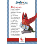 Cardinals are believed to be messengers sent from Heaven to let us know lost loved ones are still near. This beautiful Jim Shore cardinal carving with heartfelt sentiment card poem penned by Leesah Marie Noon, perches on a branch of flowers.