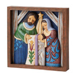These hand painted decorative plaques by Jim Shore add a little wonder around the house. With detailed rosemåling and quilt art pattern, these plaques add enchanting accent to any room. This plaque highlights the manger scene on the First Noel.
