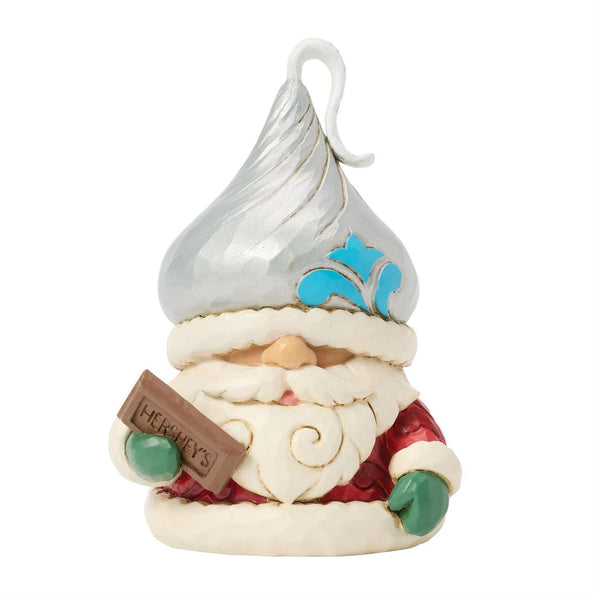Add a touch of whimsy and sweetness to your holiday décor with the Hershey Gnome KISSES Hat Mini Figurine, a charming Jim Shore collectible, available exclusively at CountryNMoreGifts.com. This adorable miniature figurine features a Santa-style gnome sporting a Hershey’s KISSES hat, pulled down over his eyes, while holding a chocolate bar in his mittened hands. With Jim Shore’s signature folk-art details, this delightful piece combines festive fun and delicious holiday nostalgia.