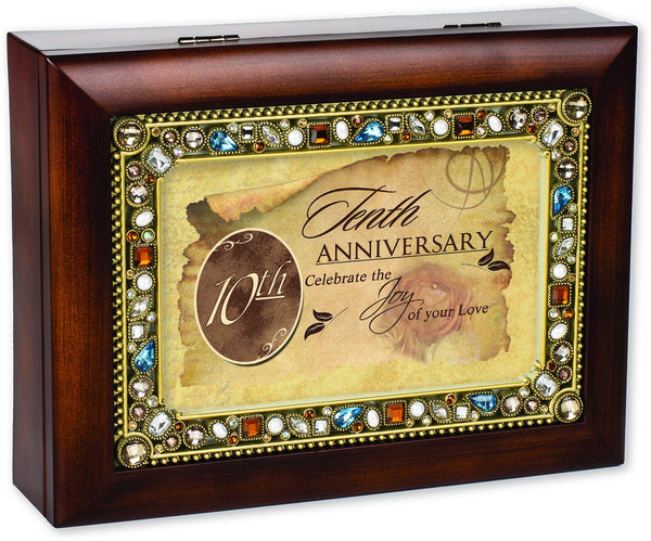 {"id":931361620011,"title":"Happy 10th Anniversary","handle":"happy-10th-anniversary","description":"\u003cp\u003eThis is a beautifully designed music box by Cottage Garden Collections that features a Bronze wood finish W\/Antique Silver. It plays a high quality Sankyo music mechanism that can be seen on the inside of the box through protective glass. It plays the tune You Light Up My Life. It has a 4x6 photo frame lid so the picture can be exchange for a personal photo. The feet are cushioned so they don't scratch surfaces. The box has a 4x4x1.5 inch cavity for storing jewelry and keepsakes. The inside is lined in nice black velvet. The hinges prevent the lid from falling all the way back and getting damaged when opened. This makes a beautiful gift for any age.\u003c\/p\u003e","published_at":"2018-01-31T09:31:42-06:00","created_at":"2018-01-31T09:31:43-06:00","vendor":"Cottage Garden","type":"simple","tags":["30SALE","Anniversary","Brands","Cottage Garden","Cottage Garden Music Boxes","do not include in feed","In Stock","Limited Stock","Not Mapp 2024","spo-default","spo-enabled","Under 25"],"price":2700,"price_min":2700,"price_max":2700,"available":true,"price_varies":false,"compare_at_price":null,"compare_at_price_min":0,"compare_at_price_max":0,"compare_at_price_varies":false,"variants":[{"id":9921703411755,"title":"Default Title","option1":"Default Title","option2":null,"option3":null,"sku":"JM146","requires_shipping":true,"taxable":true,"featured_image":null,"available":true,"name":"Happy 10th Anniversary","public_title":null,"options":["Default Title"],"price":2700,"weight":0,"compare_at_price":null,"inventory_quantity":2,"inventory_management":"shopify","inventory_policy":"deny","barcode":"633303280888","requires_selling_plan":false,"selling_plan_allocations":[],"quantity_rule":{"min":1,"max":null,"increment":1}}],"images":["\/\/countrynmoregifts.com\/cdn\/shop\/products\/26561.jpg?v=1521927980"],"featured_image":"\/\/countrynmoregifts.com\/cdn\/shop\/products\/26561.jpg?v=1521927980","options":["Title"],"media":[{"alt":"Happy 10th Anniversary - Country N More Gifts","id":1277515956267,"position":1,"preview_image":{"aspect_ratio":1.202,"height":1155,"width":1388,"src":"\/\/countrynmoregifts.com\/cdn\/shop\/products\/26561.jpg?v=1521927980"},"aspect_ratio":1.202,"height":1155,"media_type":"image","src":"\/\/countrynmoregifts.com\/cdn\/shop\/products\/26561.jpg?v=1521927980","width":1388}],"requires_selling_plan":false,"selling_plan_groups":[],"content":"\u003cp\u003eThis is a beautifully designed music box by Cottage Garden Collections that features a Bronze wood finish W\/Antique Silver. It plays a high quality Sankyo music mechanism that can be seen on the inside of the box through protective glass. It plays the tune You Light Up My Life. It has a 4x6 photo frame lid so the picture can be exchange for a personal photo. The feet are cushioned so they don't scratch surfaces. The box has a 4x4x1.5 inch cavity for storing jewelry and keepsakes. The inside is lined in nice black velvet. The hinges prevent the lid from falling all the way back and getting damaged when opened. This makes a beautiful gift for any age.\u003c\/p\u003e"}
