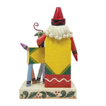 Crayola creatively re-imagines Christmas with color and crayons in this playful Jim Shore piece. Santa is a jolly box of red crayons while a pastel hoofed reindeer balances beside him. With humor and heart, this figurine adds hue of the holidays.