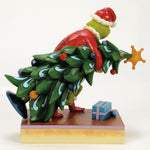 Bring a touch of mischievous holiday fun to your décor with the Grinch Carrying / Stealing Tree Figurine by Jim Shore. Dressed in his makeshift Santa suit, The Grinch is captured mid-scheme, tiptoeing away with a festive Christmas tree in hand. This beautifully crafted figurine combines humor, nostalgia, and folk art charm to celebrate one of the most iconic moments from How The Grinch Stole Christmas! From Country N More Gifts