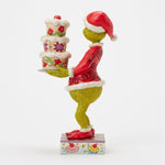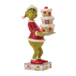 Add mischievous charm to your holiday décor with the Grinch with Grinchy Cake Figurine by Jim Shore. Disguised in his Santa suit, The Grinch beams with delight as he sneaks away with a towering cake, ready to swipe Christmas treats in true Whoville fashion. This figurine beautifully captures the humor and festive trickery of Dr. Seuss' beloved classic by showcasing Jim Shore's signature rosemaling and patchwork designs. From Country N More Gifts