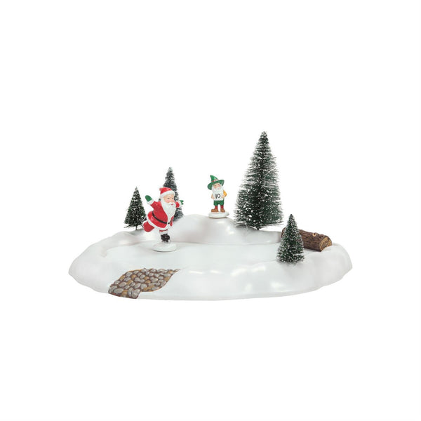As we can see the elf has rated Santa's moves A Perfect 10 . This animated piece will tuck into small spaces on any Village display.