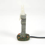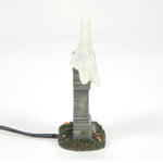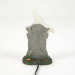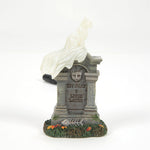 The intricate details of the tombstone and the whimsical portrayal of Kit E. Kat reflect Department 56's unwavering commitment to quality and creativity. A tombstone erected for the lost pet showing the ghostly spirit of Kit E. Kat perched on top of the stone.