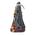 This Jim Shore Grim Reaper is a frightful sight, cloaked in shadows and carrying a gleaming scythe. Skulls and thorns rise from the bone-strewn ground as red LED lights glow beneath his ghostly cape, casting an eerie light on the lantern he holds.