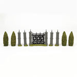 Transform your Harry Potter village with the Malfoy Manor Hedge & Gate Set, a 25-piece set from Department 56. Sold by CountryNMoreGifts.com, this versatile set is designed to capture the ominous grandeur of the Malfoy family estate. The high hedges and imposing metal gates not only add authenticity to your display but also conceal the sinister activities taking place just beyond. A must-have addition for collectors and fans alike, this set allows endless creative possibilities for building your magical world.