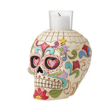 This fantastic sugar skull votive honors the nearly 3,000 year old tradition with bright color and pattern. Designed by renown artist Jim Shore, this charming bust features rosemaling flowers to honor the Day of the Dead custom and celebrate Halloween.
