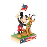 What is more American than a man and his dog? In this case, that man is a mouse, Mickey and he wears a wide smile as he waves the red, white and blue flag proudly. Jim Shore celebrates patriotism with Disney's favorite duo, both born in the USA.