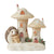 White Woodland Gnomes, are known for creating their homes under toadstools. This mushroom grove creates a small neighborhood of patchwork patterned cottages complete with windows, chimneys, tiny doors, sidewalks and gardens.