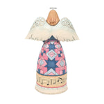 This exquisite Music Angel Figurine by Jim Shore captures the emotional and spiritual power of music. With a serene expression and graceful wings, this angel is adorned with intricate rosemaling and patchwork details, making it a heartfelt tribute to the universal language of music. Whether you’re a musician or a music lover, this figurine inspires harmony and peace.  At the bottom of the angel's flowing skirt, a musical staff features the iconic notes of Amazing Grace, a hymn known for its emotional depth and timeless message. The silver clef in her hands symbolizes the connection that music fosters across cultures and generations, making this figurine a perfect representation of the art’s profound impact. From CountryNMoreGifts.com.
