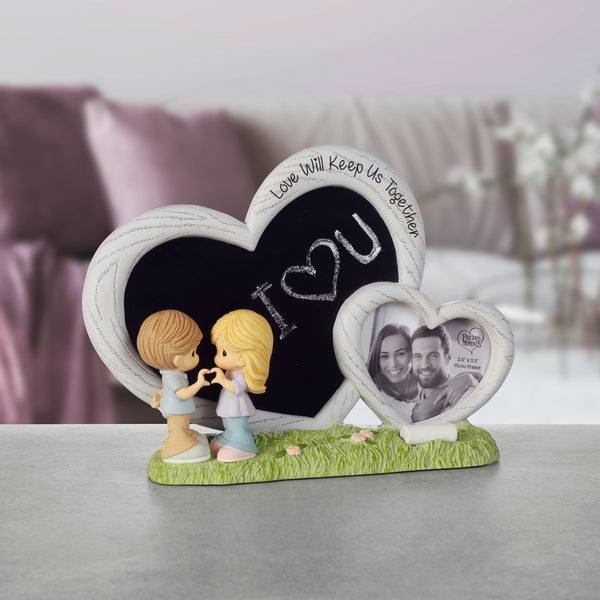 Celebrate love and creativity with the Love Will Keep Us Together Chalkboard Photo Frame, available exclusively at CountryNMoreGifts.com. This unique Precious Moments photo frame isn’t just for displaying memories—it also lets you personalize it with your names, a sweet message, or a meaningful quote using the included piece of chalk. A charming way to showcase a 2.5” x 3.5” photo, this frame is perfect for couples, families, and special occasions.