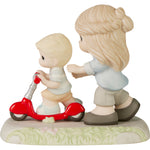 Celebrate the invaluable guidance of mothers with the "Mom, You Keep Me Rolling" Figurine. In this heartwarming scene, a mom teaches her son the art of riding his shiny red scooter, symbolizing the countless lessons and encouragement she provides throughout his journey. From first steps to riding a bike and beyond, Mom plays a pivotal role in her child's growth and development, inspiring them to strive for their very best.