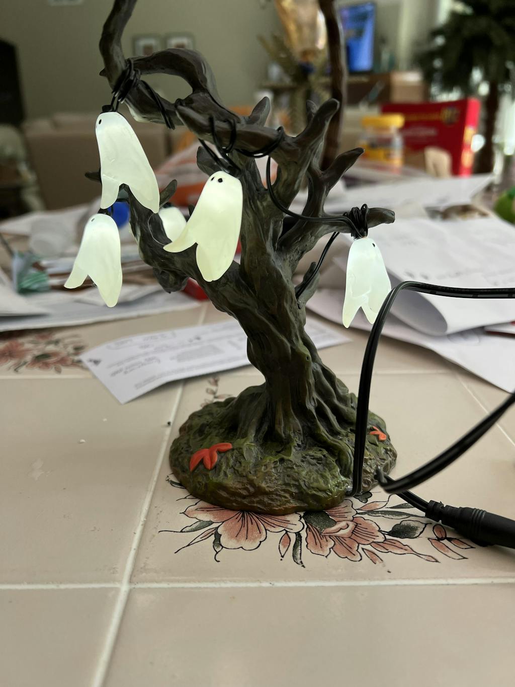 Department 56 Illuminated Ghost Tree Item 6005571. New for 2020. From Snow Village Halloween Series Lit Buildings & Accessories at CountryNMoreGifts.com