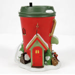 Indulge in the warmth and cheer of the season with the "Bean Depot Espresso Co." by Department 56. This charming lit ceramic building brings the cozy ambiance of a bustling coffee shop to your holiday display, offering a delightful retreat for Santa's hardworking elves and all who seek a comforting pick-me-up.