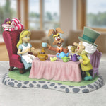 Join Alice and her eccentric companions for an unforgettable tea party in this enchanting Precious Moments figurine, Mad About You. Featuring the beloved characters from Disney’s Alice in Wonderland, Alice sits amidst her quirky new friends—the Mad Hatter, the March Hare, the Cheshire Cat, and the Dormouse. Each character is expertly detailed to capture their unique personalities, from the Hatter's iconic hat to the Cheshire Cat’s mischievous grin, creating a scene that overflows with charm and magic. From Country N More Gifts