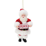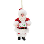 This Clothtique stiffened fabric and mixed media Santa holds a message sign that flips to show two messages.