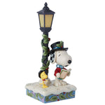 • Jim Shore Peanuts Collection- Snoopy & Woodstock next to Lit Lamp Post