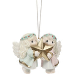 • A pair of angels lift a golden star, perhaps preparing to place it on a heavenly Christmas tree.