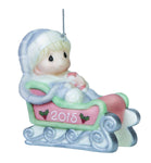 This beautiful ornament commemorates his first Christmas! wrapped in love, this teardrop-eyed precious moments boy sits in his little sleigh that is dated 2015! this stunning ornament will be a forever reminder of this joyful day!