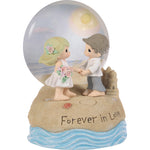 Capture the beauty of eternal love with the Forever In Love Lighted Musical Snow Globe by Precious Moments. Featuring a joyful couple writing their vows in the sand, this heartwarming scene brings the charm of a beachside wedding to life. As the couple shares their seaside “I do,” the snow globe plays the timeless wedding classic, “Here Comes The Bride.” With gentle light glowing from within and shimmering glitter swirling like sea spray, it's a breathtaking tribute to love that knows no bounds. From CountryNMoreGifts!
