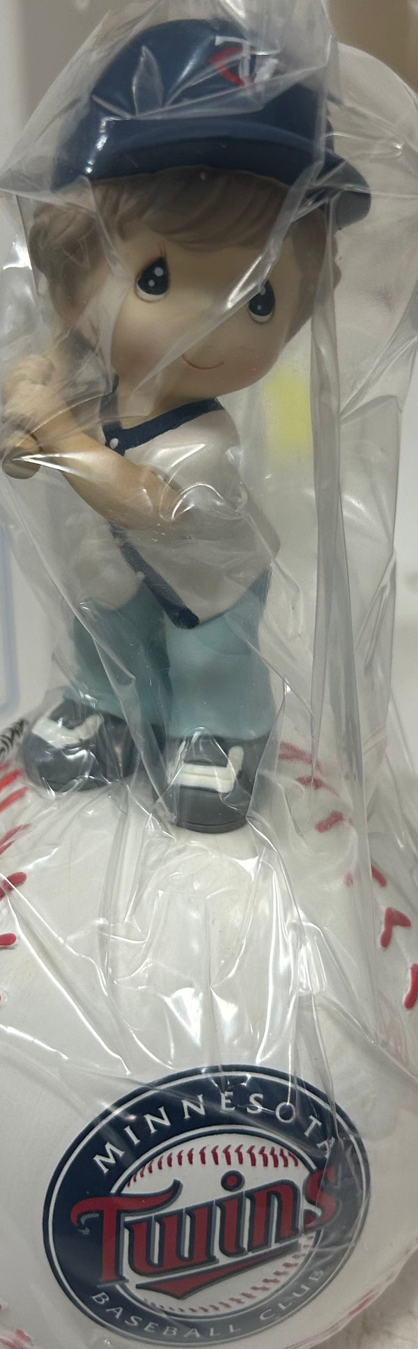 Enjoy the Minnesota Twins with this adorable Precious Moments musical figurine! Featuring a Twins girl batting, this piece is sure to bring delight. With a few simple turns you can hear the delightful beat of the classic “Take Me Out to the Ballgame”. Perfect for any baseball fan!