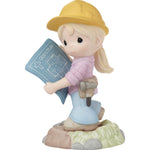 • Wearing a hardhat and holding a blueprint for God’s plan, this young blonde construction worker puts her trust in the life instructions prepared for her.