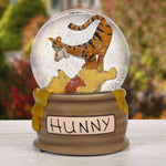 This cleverly designed Precious Moments snow globe features Tigger so thrilled to be Pooh's friend that he has playfully toppled him over in excitement. The honey pot base is beautifully detailed, with " Hunny” dripping down the side, creating a sweet and whimsical design. Shake the globe to see shimmering snow swirl around Pooh and Tigger, then wind it up to hear the beloved Winnie the Pooh Theme song. From Country N More Gifts!