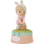 Add a spring to your step this season with an Easter-themed musical that plays “The Entertainer.” As the music fills the air, let it evoke feelings of happiness and renewal, setting the perfect mood for Easter festivities. Measuring approximately 6 inches in height, this musical is carefully crafted from resin and expertly hand-painted by artisans at Precious Moments, ensuring exquisite detail and quality craftsmanship. From Country N More Gifts!