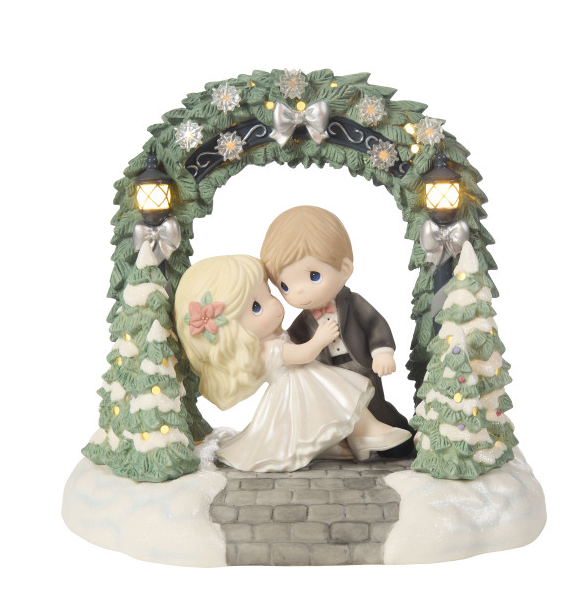 Create a magical moment that glows with love and serenity with the With You, The Night Is Beautiful And Bright Lighted Limited Edition Figurine from Precious Moments. This heartwarming piece showcases a couple dressed in their Wedding attire dancing under an arch that's lit up! Crafted of fine bisque porcelain and limited to just 3,000 pieces worldwide, this glowing treasure is a symbol of love, connection, and the quiet beauty of spending special moments with someone dear. The gentle light and tender sculpting make it a centerpiece of romance for any season.
