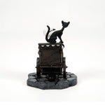 Join the twisted genius of Dr. Finkelstein in Department 56's chilling creation, where he holds a confab with his faithful black cat about his next mad invention after creating Sally, the wheelchair-bound beauty from Nightmare Before Christmas.
