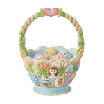 Beautifully designed by Jim Shore, this 20th Annual Easter basket will be the final introduction in the annual basket series. The basket features an intricate handle complemented by a heart, and egg embellishments from previous designs surround the piece. This collectible comes with four unique artist’s eggs, each one carefully crafted and painted to complement the basket’s ornate details. These eggs serve as a stunning representation of Jim Shore's signature style, combining traditional folk art with a contemporary flair. The eggs add an extra touch of color and artistry to this final annual basket, making it a treasured piece for any Easter display. From Country N More Gifts!