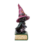 Add a touch of whimsical magic to your Halloween décor with the Black Cat Sitting on Book Pint, a delightful Jim Shore figurine available exclusively at CountryNMoreGifts.com. This charming black cat, dressed in a witch’s hat and cloak, perches atop a bound book of spells, exuding an air of mystery while staying too cute to spook. Perfect for cat lovers and Halloween collectors alike, this enchanting figurine brings a not-too-scary charm to your seasonal display.