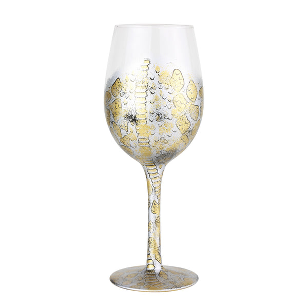 This snake skin inspired wine glass is powerfully pricking. Show the world the venom in your veins with this bold beaker. Made from artisan blown glass. Hand wash.
