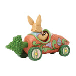 Driving a uniquely crafted car resembling an carrot on wheels, this 3rd annual Bunnies on Parade piece speeds toward Easter wishes. This sportster is a Spring lovely cruising in style.