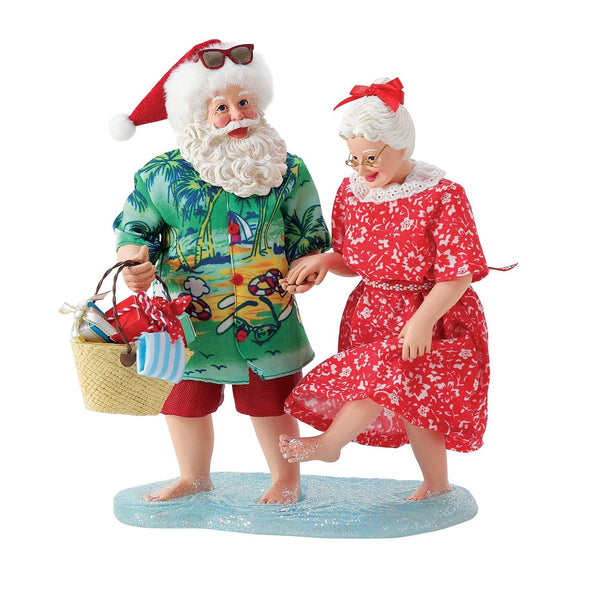 Cool surf and warm sand are the perfect make a beach day even better. Mr. and Mrs. Claus have brought everything they need to spend the day in the sunshine.