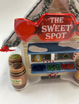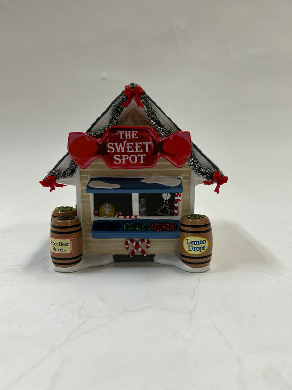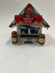 Stop at the Sweet Spot to fill your sweet spot -- this booth at the Farmer's Market is always filled with homemade candies and other treats. The piece is hand-crafted and hand-painted ceramic lit building.