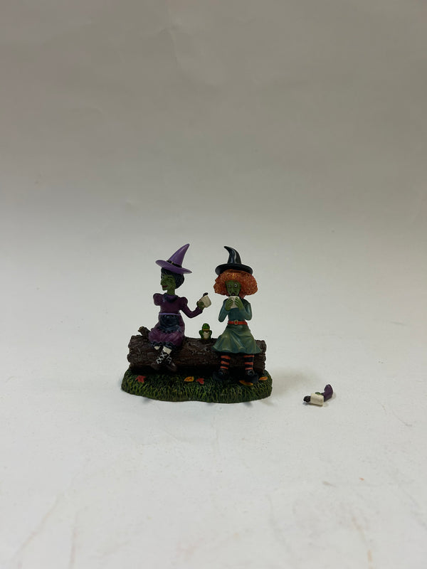 Introducing Jitter Witches, a hilariously spooky addition to the Department 56 Halloween Village collection, available at Country N More Gifts. With a steaming mug in each hand, the elder witch proudly embraces her coffee addiction. However, her drinking companions can’t help but notice her bobbling head and jittery demeanor—making them question if they really want to take a sip of their own cups of joe!